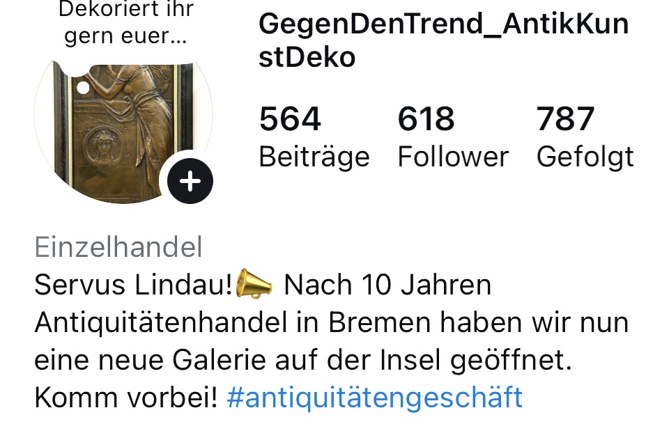 Seit dem 21. März 2025 erwartet Euch unsere neue Kunst- und Antiquitätengalerie auf der Lindauer Insel mit besonderen Geschenken, exquisiten Wohnaccessoires und seltenen Sammlerstücken, die wir mit Liebe und Geduld für Euch handverlesen haben!
